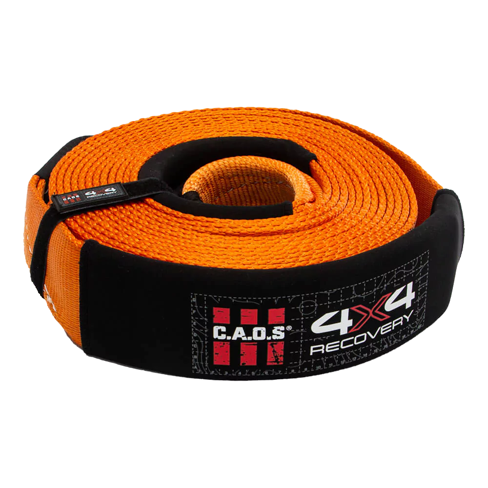 The CAOS 8T Recovery Snatch Strap is designed for 4WD recoveries where traction alone isn’t enough to get you unstuck. Made from 100% nylon with 20% kinetic stretch, this strap absorbs energy and transfers it smoothly between vehicles, reducing shock loads on recovery points.